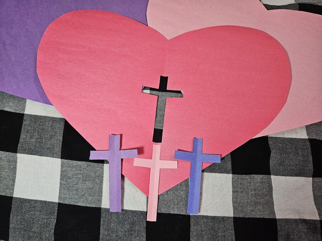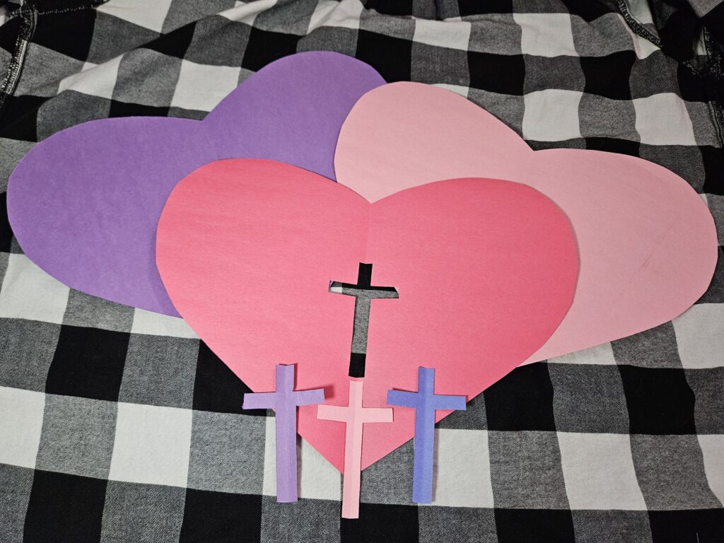 All of our spiritual hearts have a piece missing. The piece isn’t really shaped like a cross, though. But the spiritual part of us longs to be with God. We fill it with lots of other things, but Jesus is the only one who can satisfy our hearts. I thought it was important for us to talk about our hearts this Valentines. We see hearts all around us. I want you to remember, though, that our hearts are broken or have a piece missing when we don’t have a relationship with Jesus.